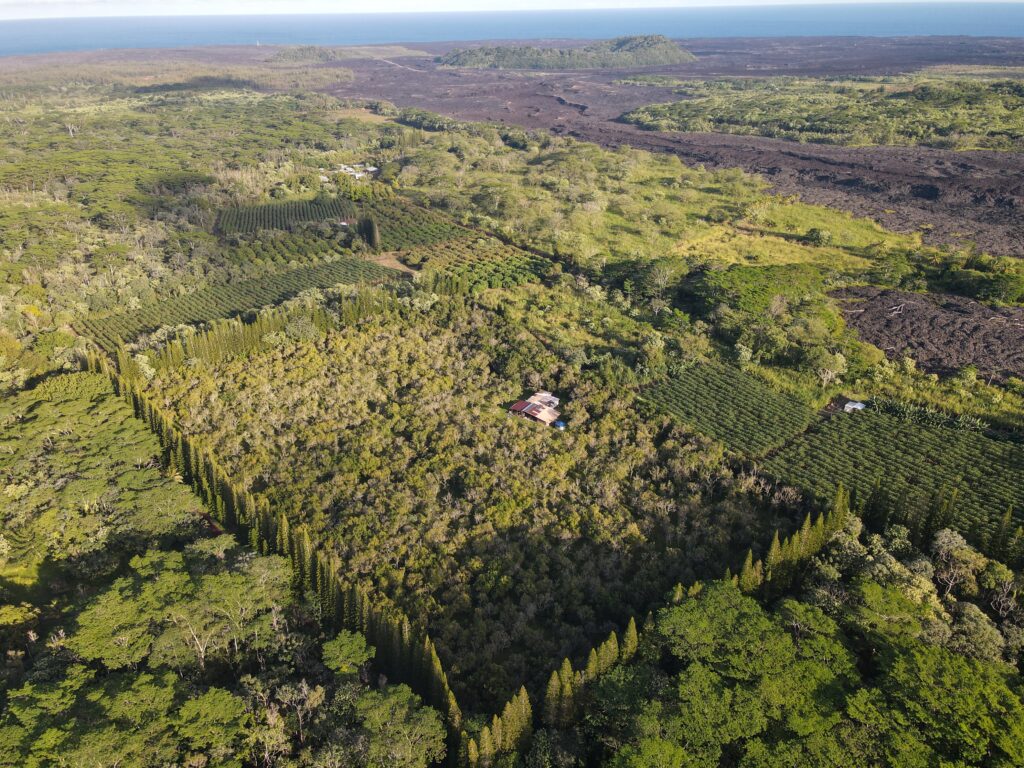 Our orchard was planted in the late-1980s, taking root in volcanic soil enriched by fire. For nearly 30 years, the trees have matured slowly and steadily—enduring storms, eruptions, and seasons of change while quietly producing one of Hawaiʻi’s most prized natural foods.